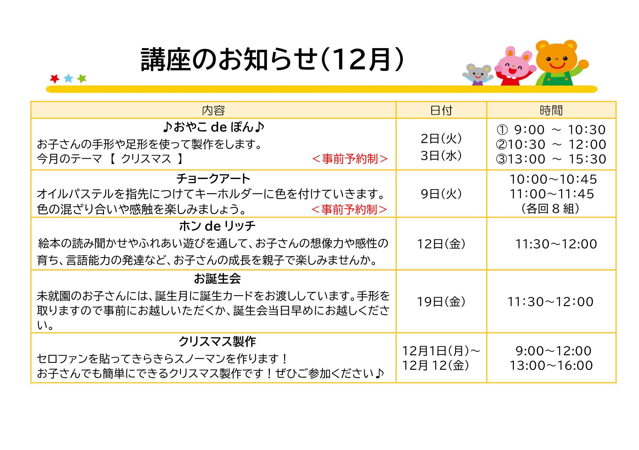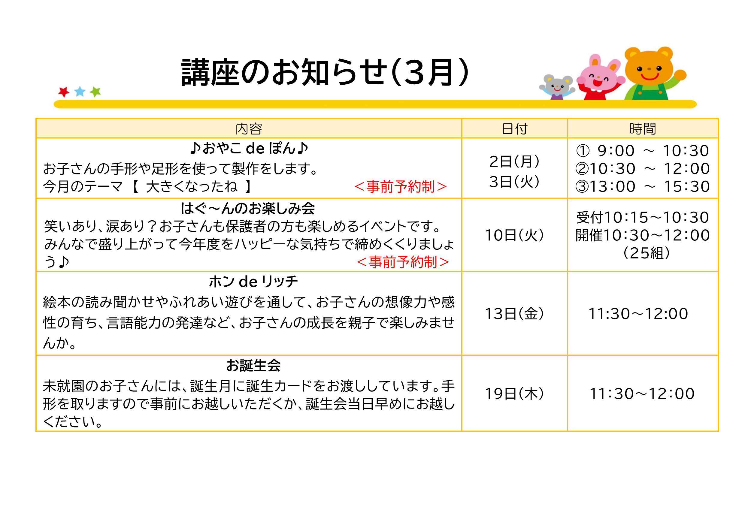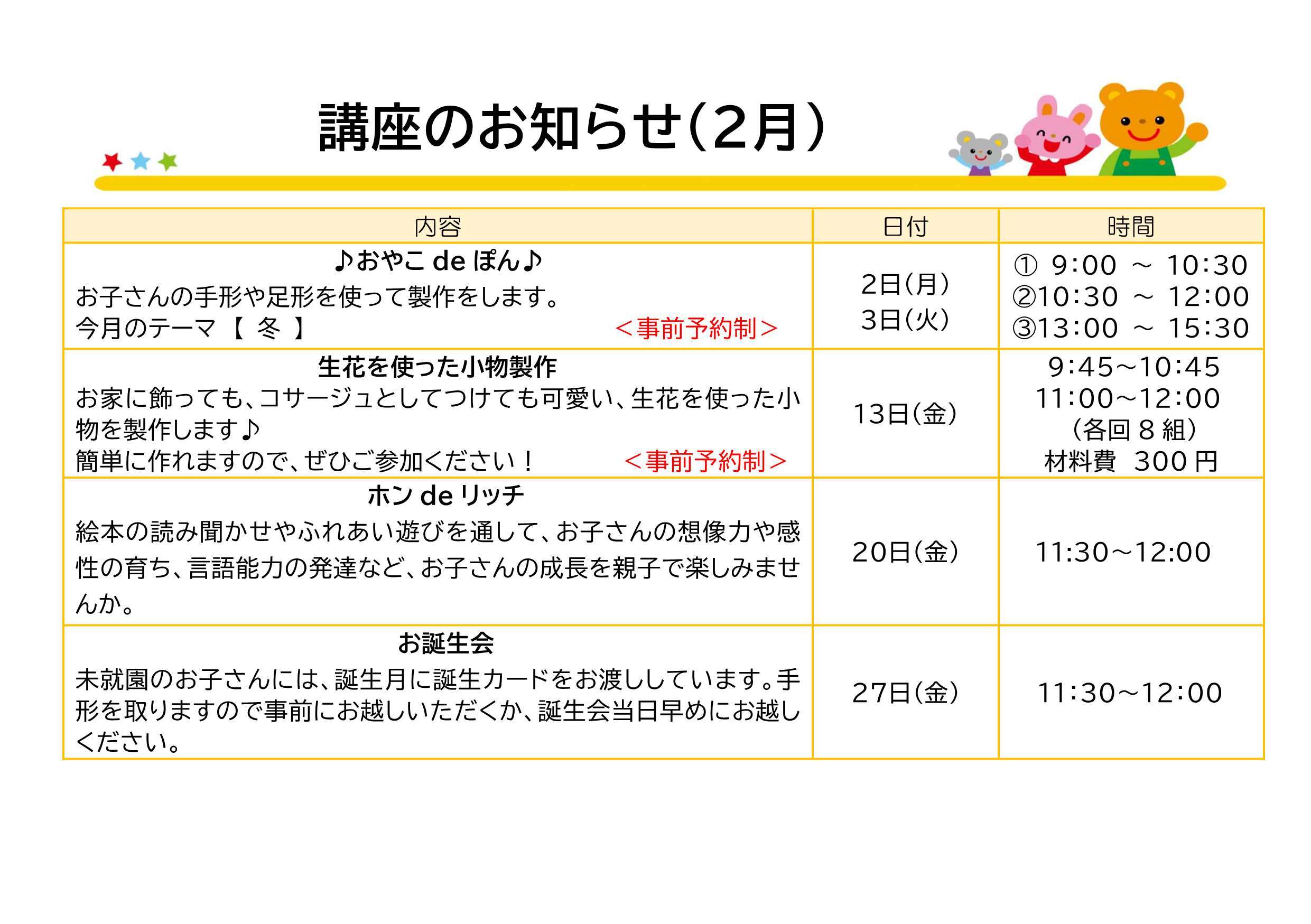 講座は事前予約が必要です。予約は約1か月前から子育て支援センターにて受付いたします。