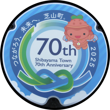 町制施行70周年を記念したロゴマークとキャッチフレーズを使用したマンホールです。