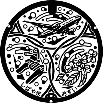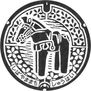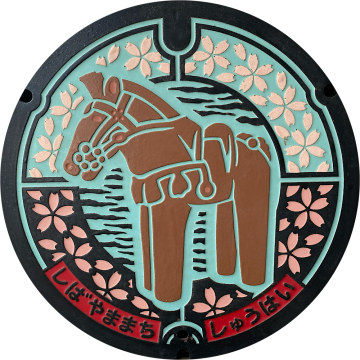 芝山古墳群から出土した「馬のはにわ」と町の木「ヤマザクラ」をデザインしたマンホールです。